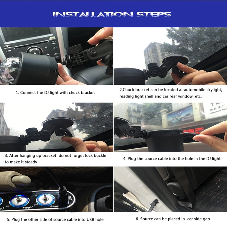 5V 6W Colorful Car Decoration DJ Light Sound Activated Strobe Effect Atmosphere Light Star Music Light Lamp with 6 RGB LED Lights, Cable Length:4m