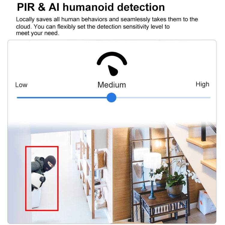 - Alarm detection: support humanoid and motion detection, PIR detection