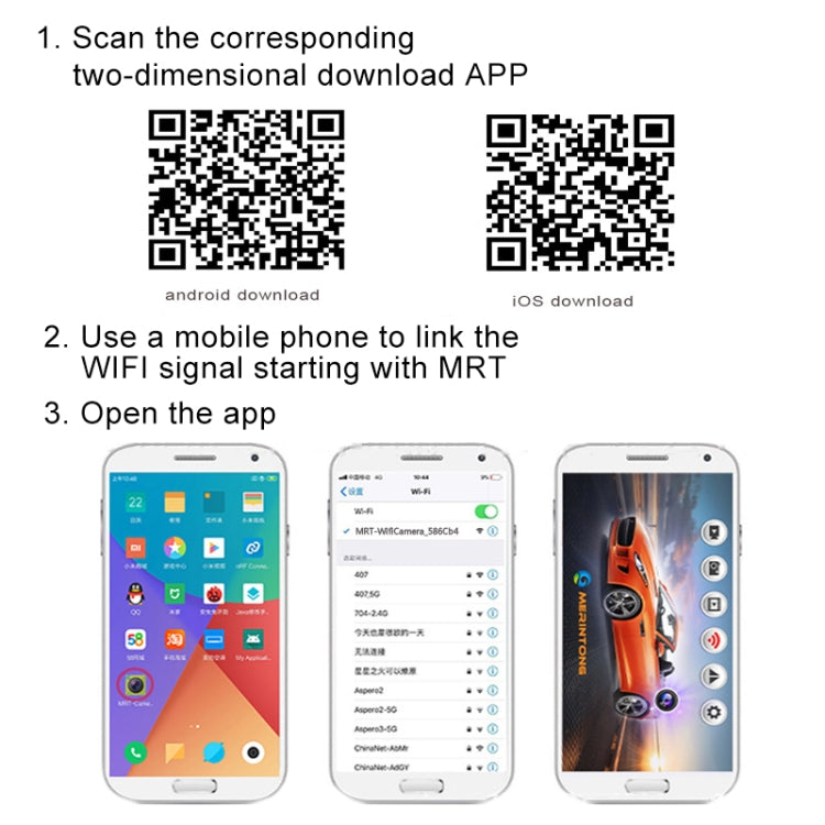 6. Free data traffic: After the camera is powered on, a wifi hotspot is automatically built, and the mobile phone does not need Internet traffic to realize high-definition video transmission. After restarting, it will automatically connect with the phone, which is easy to use.