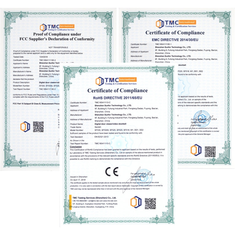 DD3 2.4 inch TFT Screen 0.3MP Security Digital Door Viewer, Support Infrared Night Vision & 90 Degrees Wide Angle