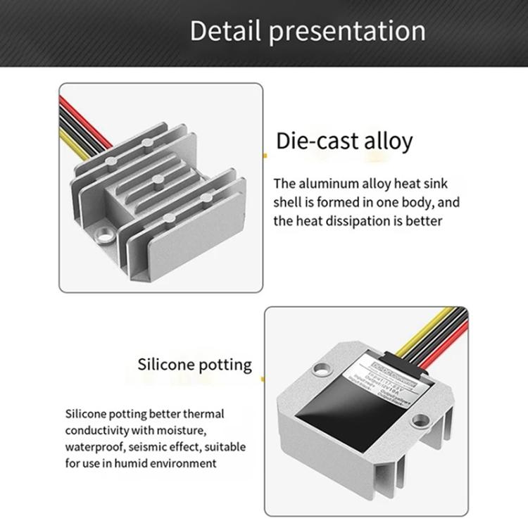 The step-down converter does not have reverse connection protection function. Please be sure to confirm the positive and negative poles of the adapter and the load before wiring to avoid reverse connection and burning the step-down converter and the load;