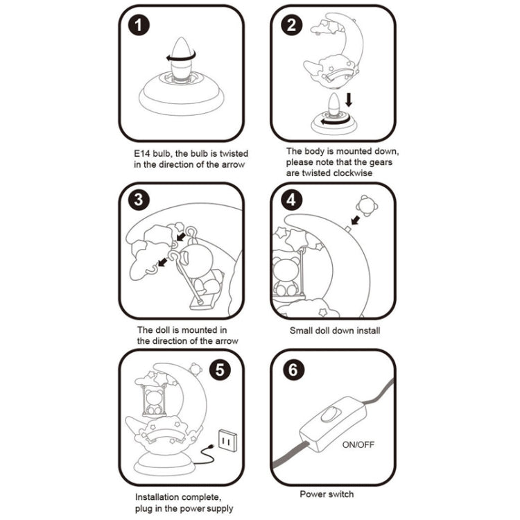 GOELONG Cartoon Moon Table Lamp Children Room Animal Night Light, Plug: