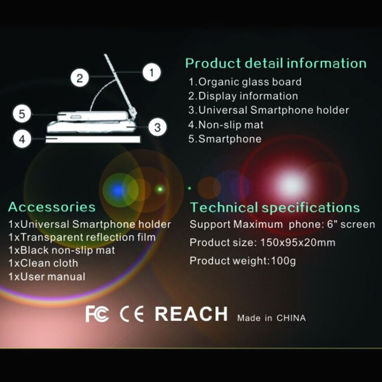 9. Products include: 1 * mobile phone bracket, 1 * reflective film, 1 * anti-skid pad, 1 * cleaning cloth, 1 * instructions.