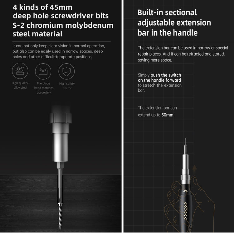 4. Flexible shaft & magnetizer: a soft shaft for flexible bending to the angle as needed.