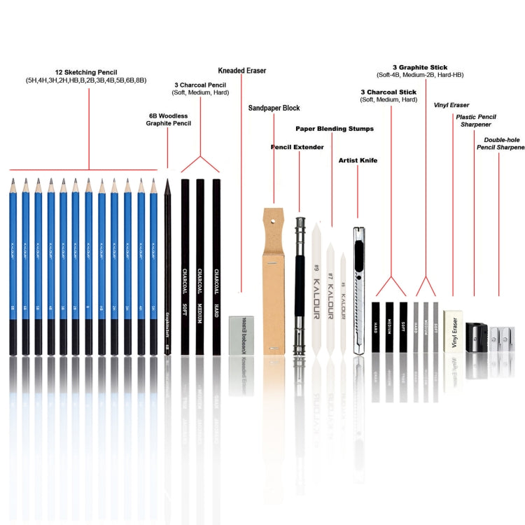 KALOUR 33 in 1 Sketch Pencil Set Beginner Brush Art Supplies