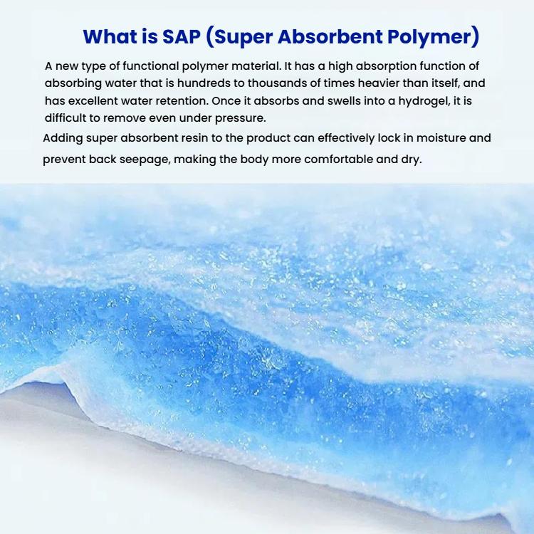 5. High-quality fluff pulp and SAP polymer, strong absorption and locks liquid, instantly dry, no layering and no reverse osmosis