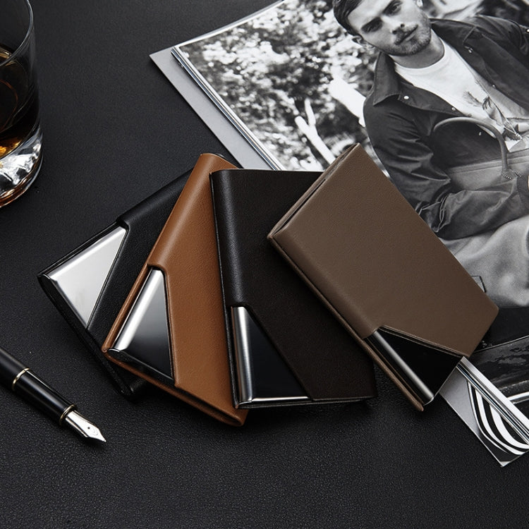 Men Leather Stainless Steel Business Card Clamp, Black, Brown, Grey, Apricot