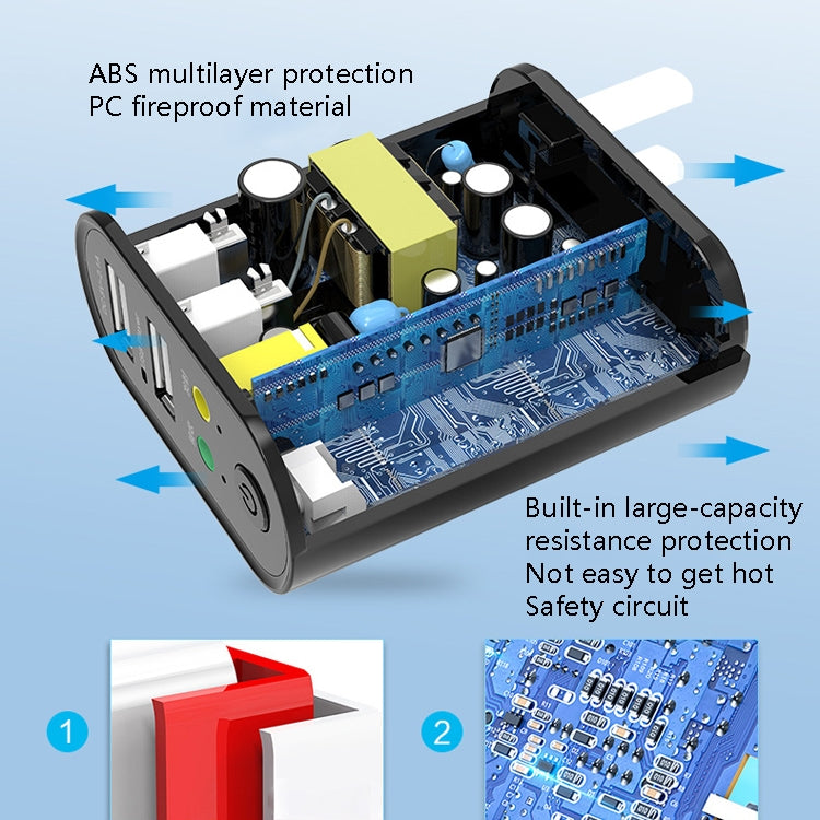 6. Built-in QC2.0 fast charging module, supporting 2.1A dual USB fast charging, easy charging for mobile phones, tablets, etc.