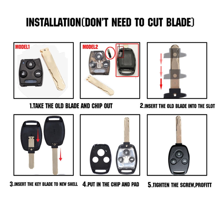 Replacement Non-embryo Car Key Case for HONDA 2 + 1 Button Car Keys, without Battery