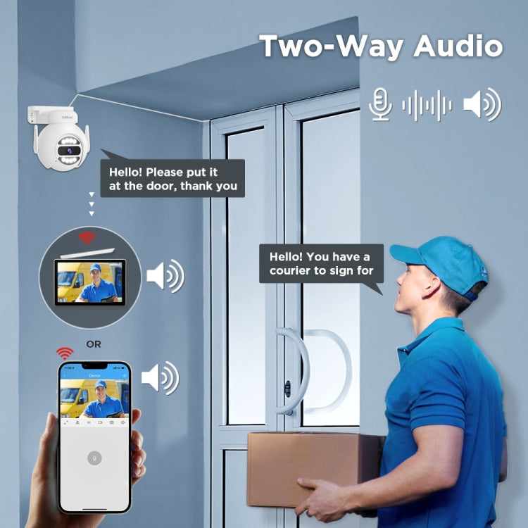 6. Support H265 compression format, which can save 50% storage space 7. Two-way voice, built-in omnidirectional microphone and speaker