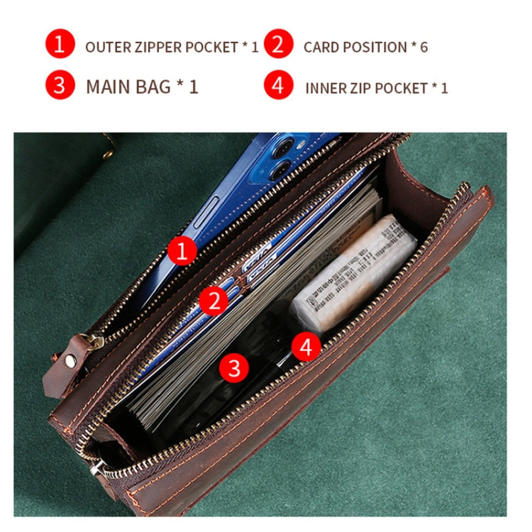TP-6029 Crazy Horse Leather Men Clutch Large Capacity Mobile Phone Bag Wallet