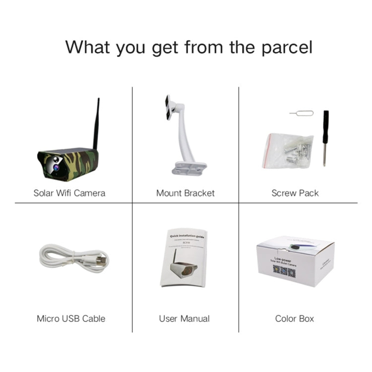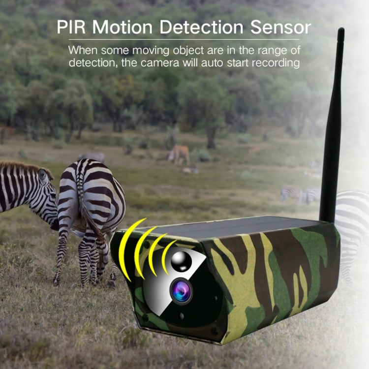 1. Solar IP camera, new choice for hunting. 2. Support PIR motion detection, when some moving object are in the range of detection, the camera will auto start recording. 3. 15m night vision. 4. Two power supply methods: solar powered, 18650 battery(not included battery). 5. Material: metal shell. 6. Wide angle: 120 degrees.