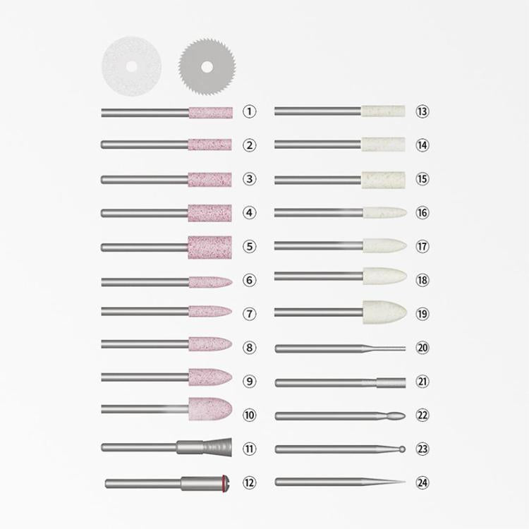 5. Components: Grinding head x 24, saw blade x 2, connecting rod x 1